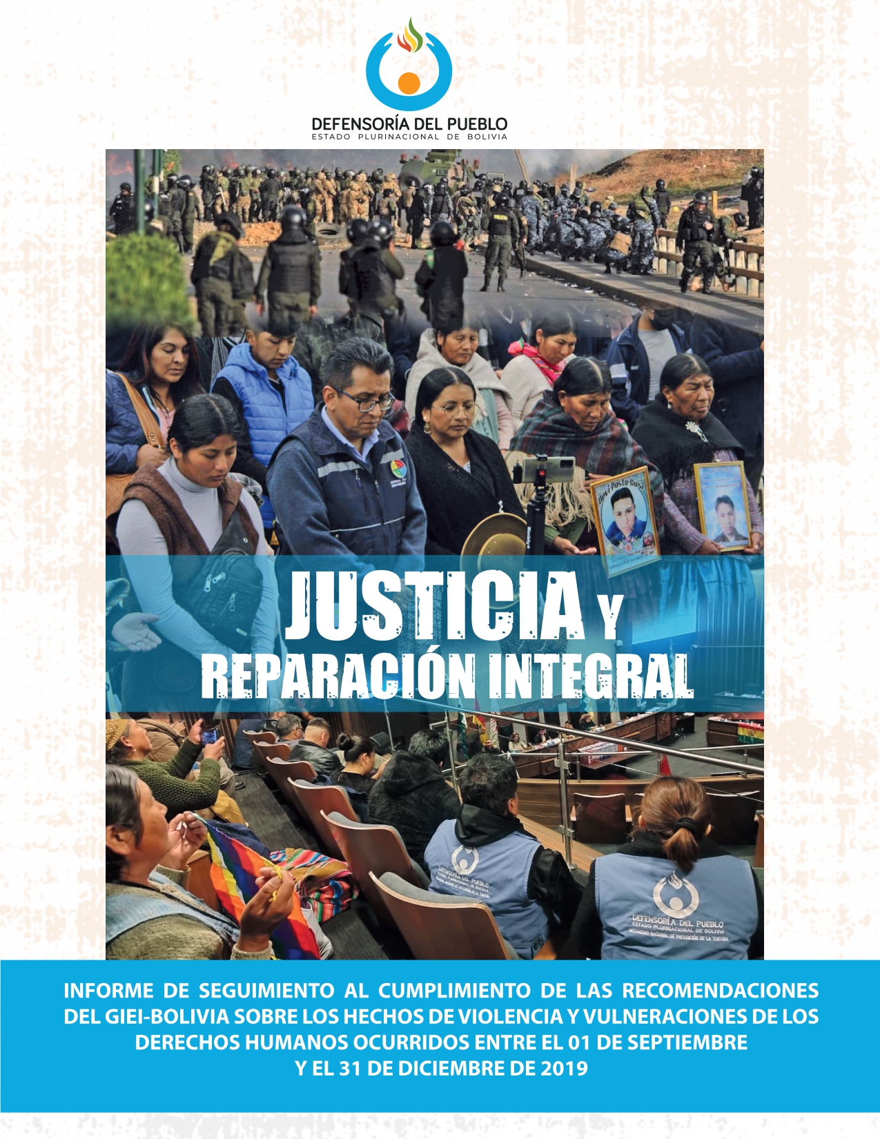 Título: Justicia y Reparación Integral - Informe de seguimiento al cumplimiento de las recomendaciones del GIEI Bolivia sobre los hechos de violencia y vulneraciones de los derechos humanos ocurridos entre el 01 de septiembre y el 31 de diciembre de 2019