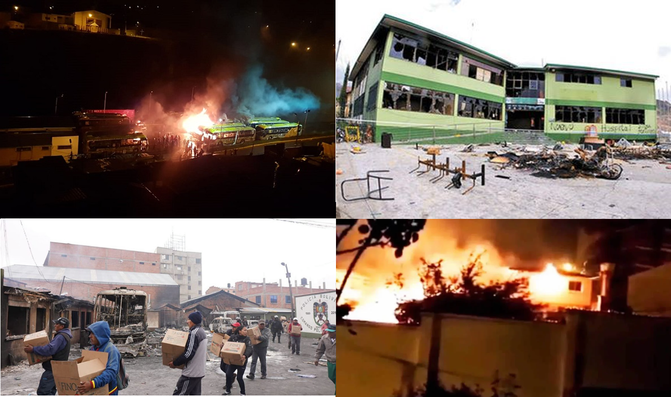 esde el 12 de noviembre, el conflicto se agudiza; en el municipio de Yapacaní se registró la quema y saqueo del Comando de la Policía y la Radio Ichilo, los enfrentamientos se trasladaron al sector del puente. El 13 de noviembre, la Policía y las FF.AA. ejecutaron Operaciones Conjuntas, que derivó en una intervención policial y militar más severa. En el municipio de Betanzos, se produjo la muerte de M. J. E., por arma de fuego, además de varios heridos. A todo lo detallado siguieron una serie de hechos que derivaron en una serie de vulneraciones de derechos humanos de la población boliviana.
