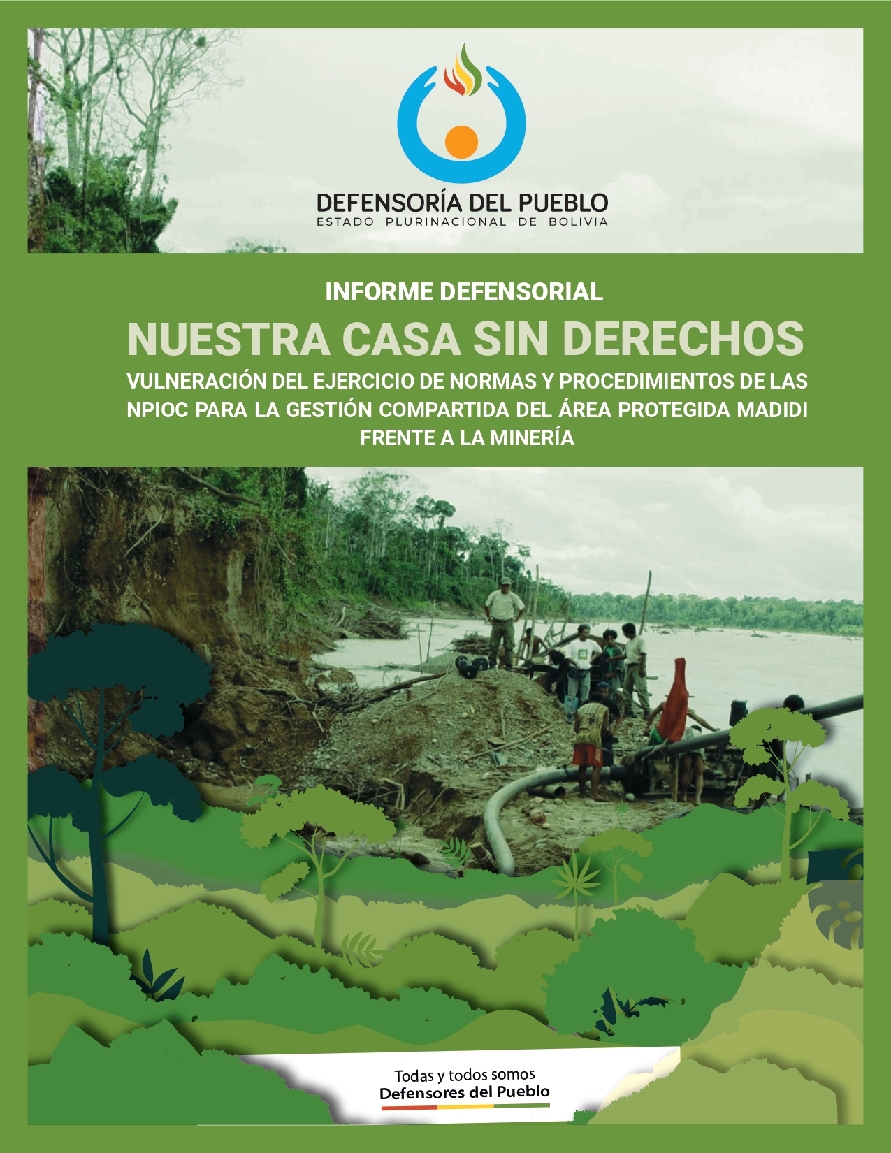Título: Informe defensorial nuestra casa sin derechos - vulneración del ejercicio de normas y procedimientos de las NPIOC para la gestión compartida del área protegida Madidi frente a la minería