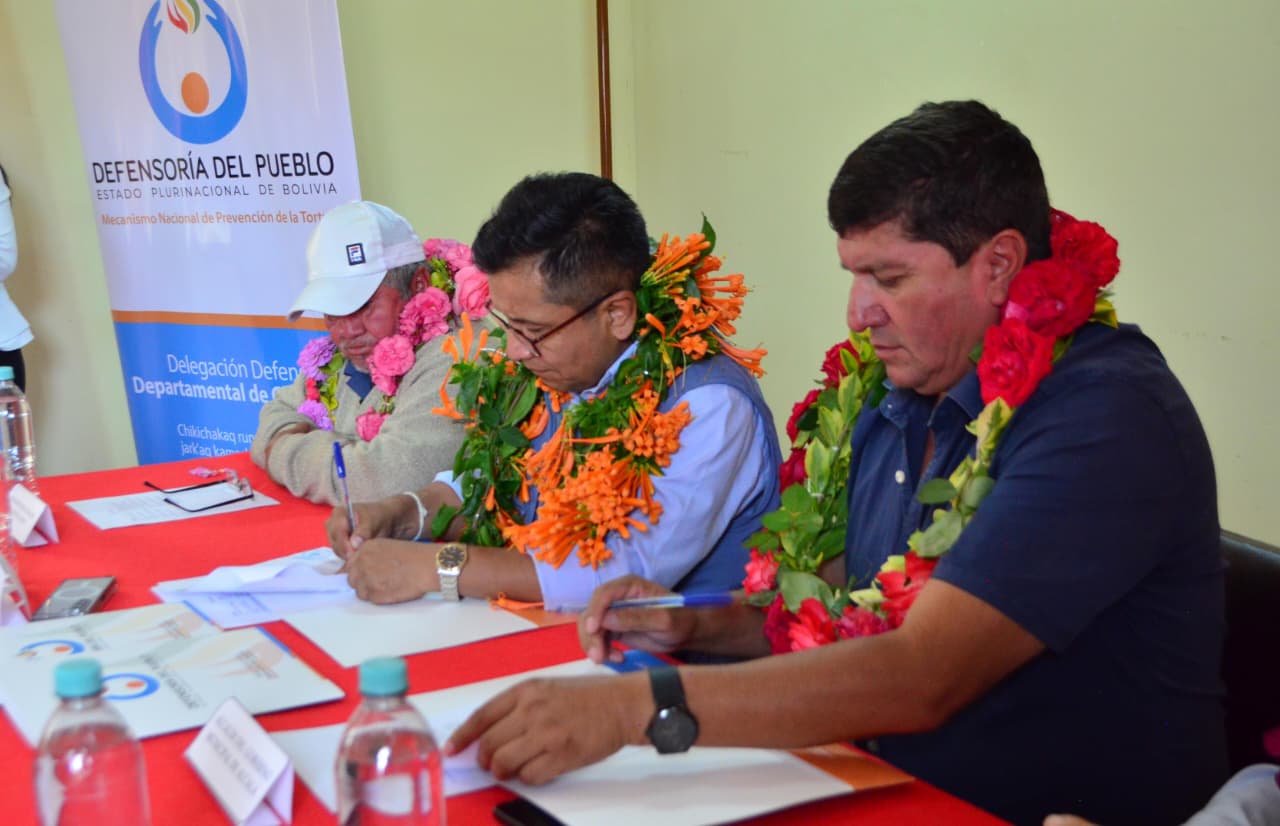 Alcalá - Chuquisaca 23 de febrero de 2026 (UCOM/DDCH).- El Defensor del Pueblo, Pedro Francisco Callisaya Aro, y el alcalde del Gobierno Autónomo Municipal de Alcalá, Oscar Gonzalo Salazar Villarroel, han establecido una alianza estratégica para fortalecer la promoción y protección de los derechos humanos, con un enfoque particular en las poblaciones en situación de vulnerabilidad y la defensa de los derechos de la Madre Tierra.