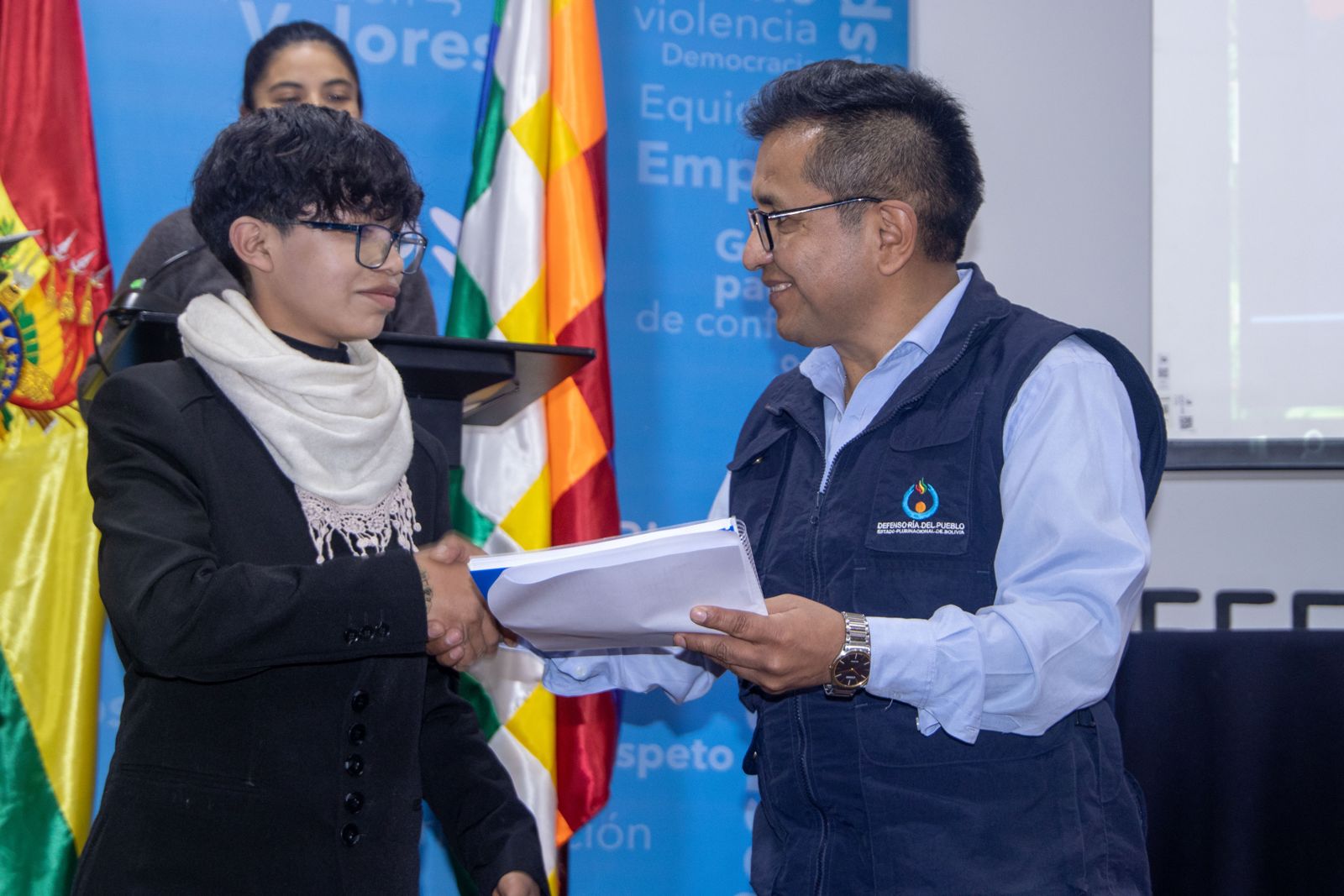La Paz, agosto 12 (UCOM/DPB).- El Defensor del Pueblo, Pedro Callisaya, recibió del Comité del Niño, Niña y Adolescente la “Agenda Nacional de la Niñez y Adolescencia: Escucha nuestras voces para proteger nuestros derechos”, la cual será entregada a las y los candidatos a la presidencia del Estado y también a las futuras autoridades electas.