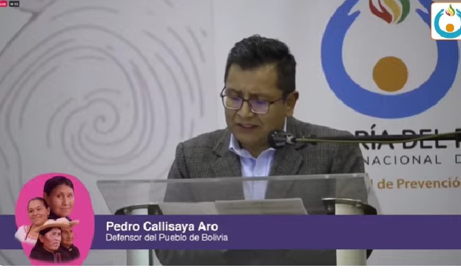 Cochabamba, 11 de septiembre de 2025 (UCOM/DDDC). – El Defensor del Pueblo, Pedro Callisaya, destacó la articulación de las plataformas departamentales encargadas de la prevención, atención y protección frente al acoso y la violencia política, mediante el intercambio de experiencias, buenas prácticas y herramientas con enfoque de género y derechos humanos, en el marco del "Encuentro Plurinacional de las Plataformas para los Derechos Políticos de las Mujeres en Bolivia", que se realiza en Tiquipaya con el apoyo de ONU Mujeres.