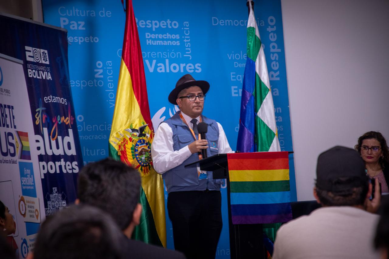 “Hoy hicimos el lanzamiento de la campaña denominada ‘SUS, Salud un derecho sin discriminación’ sobre la base del instructivo emitido por el Ministerio de Salud y Deportes, N°18/2025, que dispone e instruye a los servicios departamentales de salud a que puedan proceder a la adscripción al Sistema Único de Salud a las personas de la población LGBTI+”, dijo el Defensor del Pueblo, Pedro Callisaya, en declaración pública.