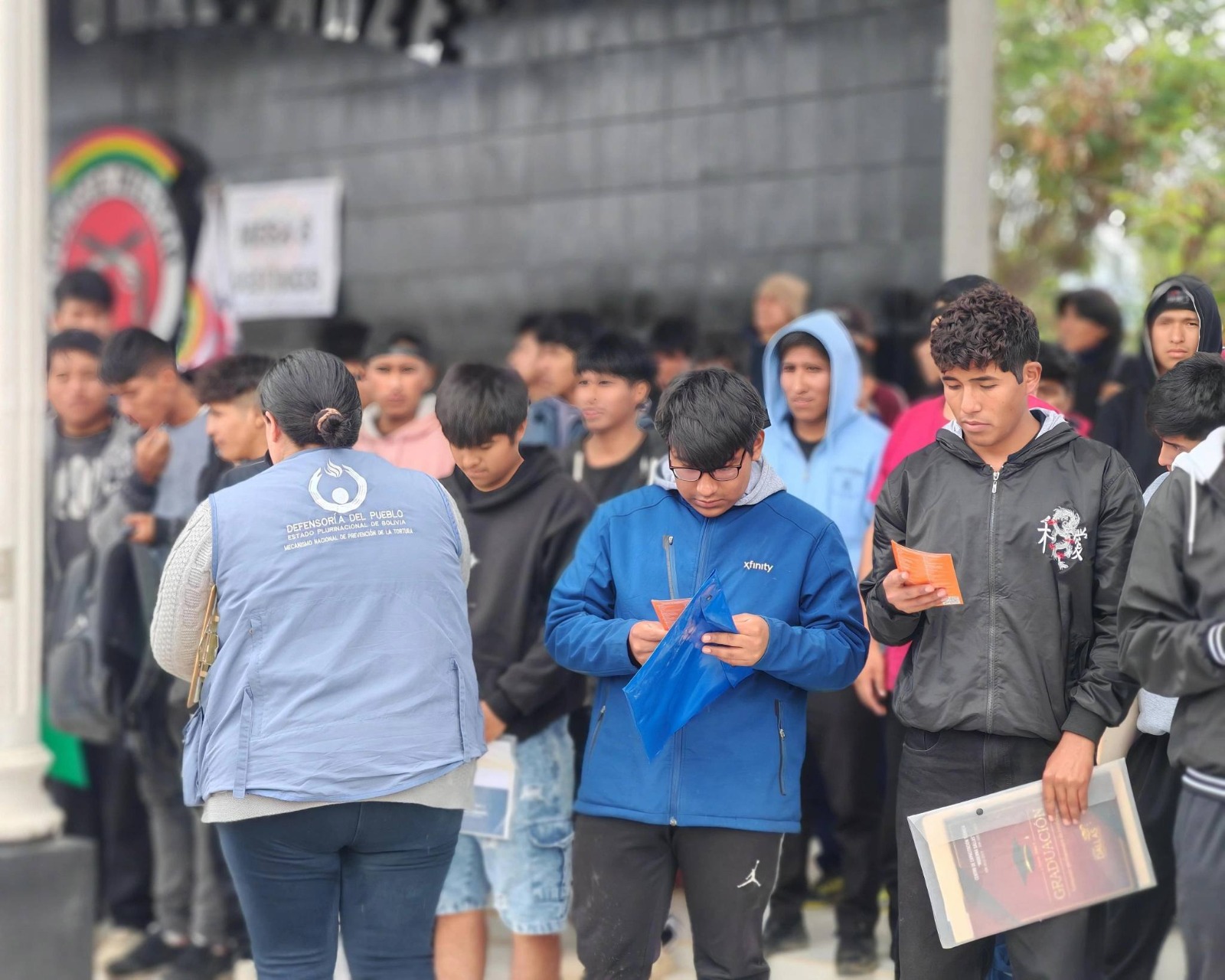 La Paz, 27 de enero (UCOM-DPB).– La Defensoría del Pueblo identificó insuficiencia de plazas para mujeres y varones, así como desinformación en los días previos al proceso de reclutamiento para el servicio militar 2025–2026, durante dos verificativos realizados a nivel nacional, en resguardo de los derechos humanos de las y los postulantes.