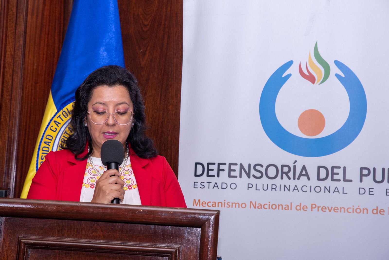 Ivett Miranda, docente de la carrera de Derecho de la Universidad Católica Boliviana, destacó el compromiso de la Defensoría del Pueblo con la justicia social y la generación de espacios de análisis. “Que esta jornada esté marcada por la reflexión profunda y el compromiso renovado con una Bolivia más justa y equitativa”, expresó.