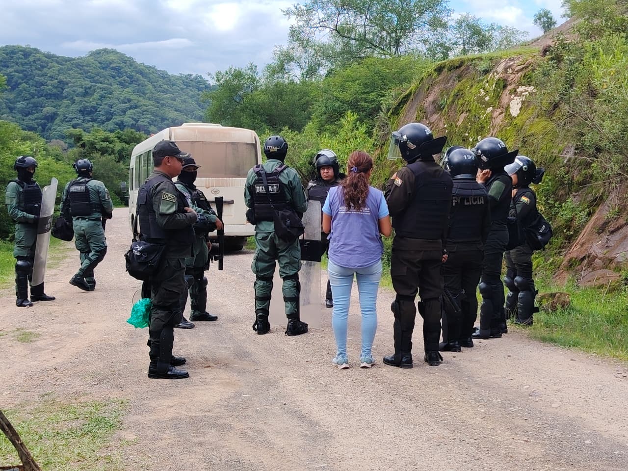 La Delegada Defensorial Departamental de Tarija, Cecilia Bolívar, informó que la presencia institucional responde a instrucciones del Defensor del Pueblo, Pedro Callisaya, con el objetivo de recabar información directa sobre los hechos, evaluar las actuaciones policiales conforme a los estándares de uso de la fuerza y constatar el estado físico integral de las personas que permanecen en el lugar.
