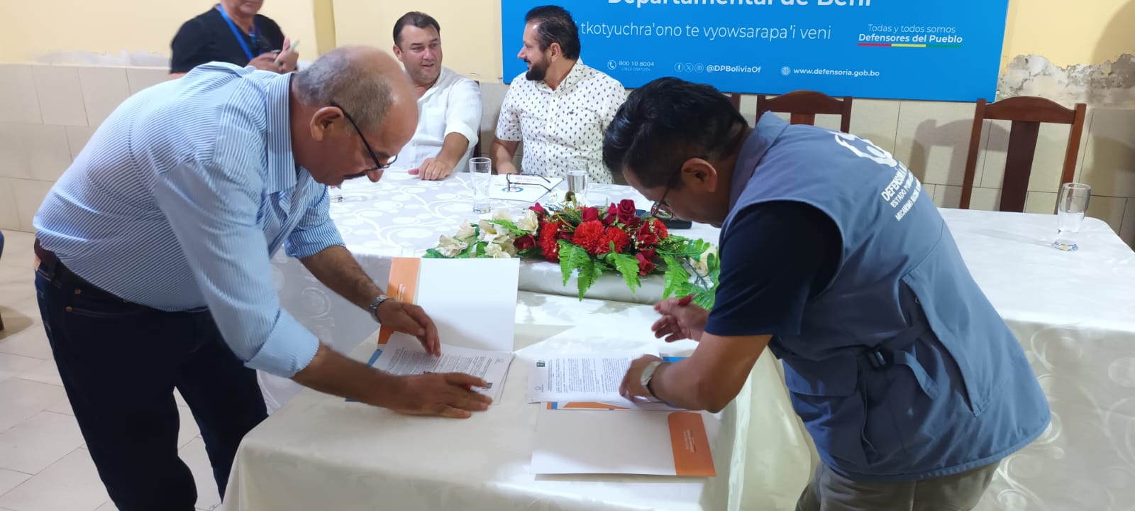 Trinidad, 24 de septiembre de 2025 (UCOM/DPB).– Con el objetivo de fortalecer la protección de poblaciones en situación de vulnerabilidad en el departamento del Beni, el Defensor del Pueblo, Pedro Callisaya, suscribió convenios de cooperación interinstitucional con los Gobiernos Autónomos Municipales de Trinidad, San Ignacio de Moxos, San Javier y San Borja. Estos acuerdos impulsarán procesos de capacitación y programas defensoriales con enfoque de derechos humanos.
