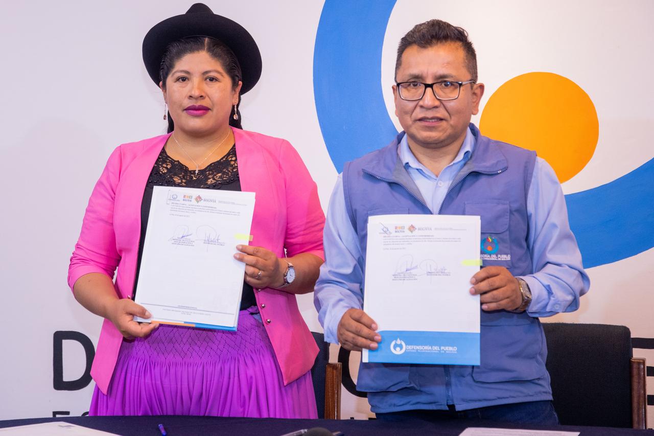 “El convenio tiene como objetivo central, fortalecer la lucha contra el racismo y toda forma de discriminación en Bolivia, consolidando un trabajo articulado que abarque tanto la prevención como el registro, seguimiento y reparación de las vulneraciones a los derechos humanos”, remarcó el Defensor del Pueblo.