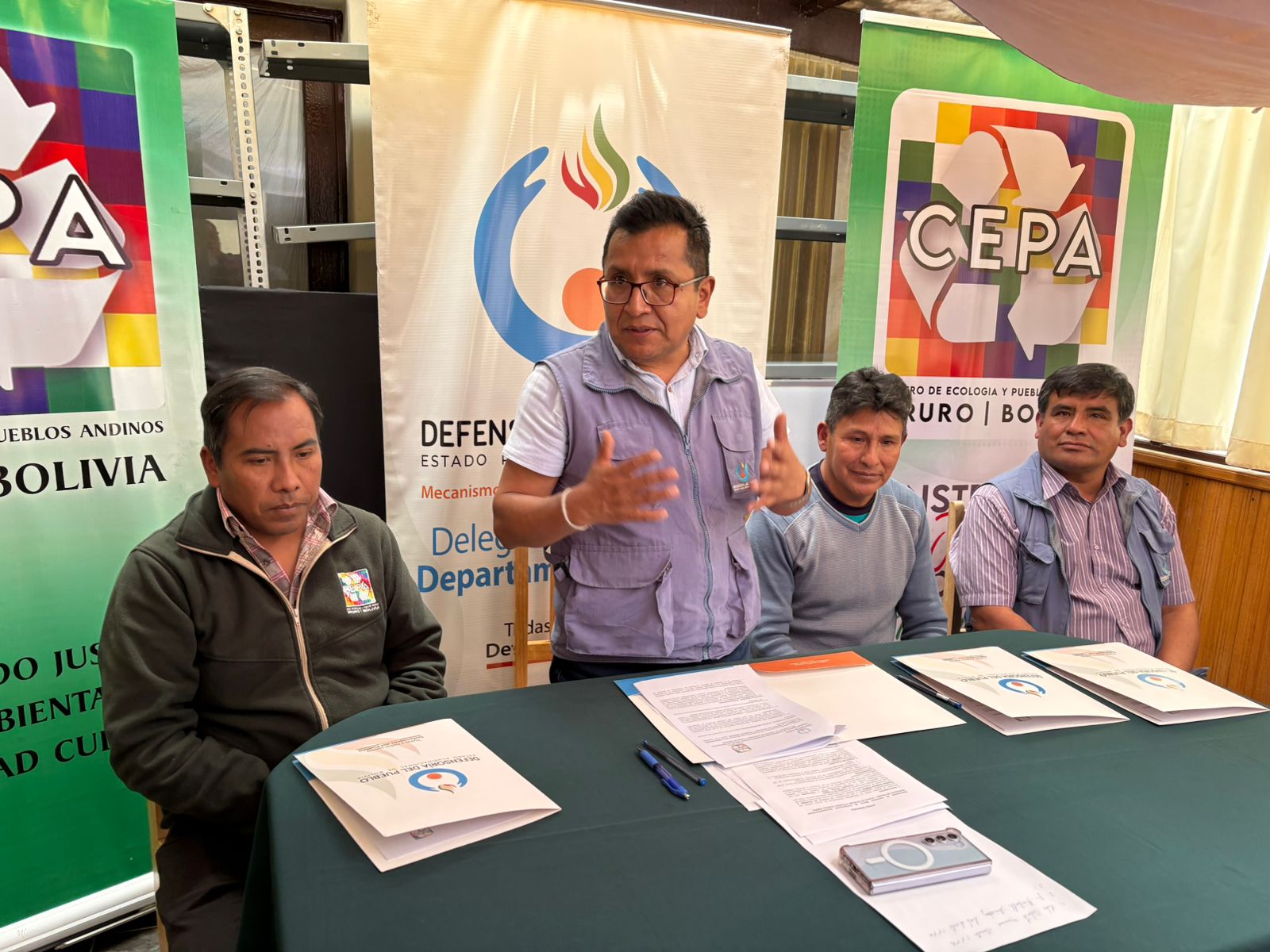 Asimismo, el Defensor del Pueblo y el director del Centro de Ecología y Pueblos Andinos (CEPA), Calixto Mamani, suscribieron un Convenio Marco de Cooperación Interinstitucional destinado a fortalecer las capacidades de las autoridades indígena originaria campesinas y comunidades locales en materia de derechos de la Madre Tierra y el derecho a la consulta previa, libre e informada, conforme al Acuerdo de Escazú.