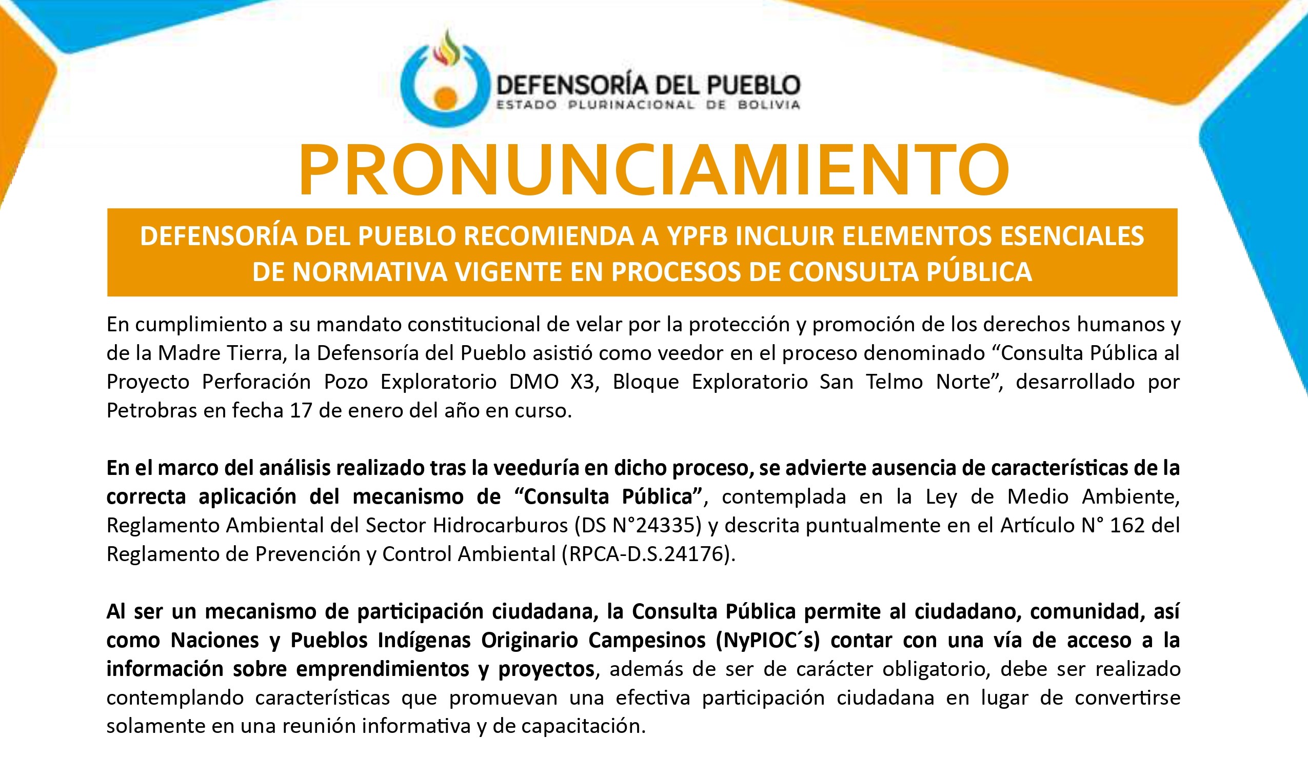 La Paz, octubre 9 (UCOM/DPB). – La Sala Constitucional Tercera del Tribunal Departamental de Justicia de La Paz, concedió tutela a la Acción Popular interpuesta por la Defensoría del Pueblo en contra de seis entidades del Estado, a fin de que asuman sus responsabilidades competenciales frente a la posible contaminación de fuentes de agua y uso de cianuro en las actividades mineras en el municipio de Viacha.
