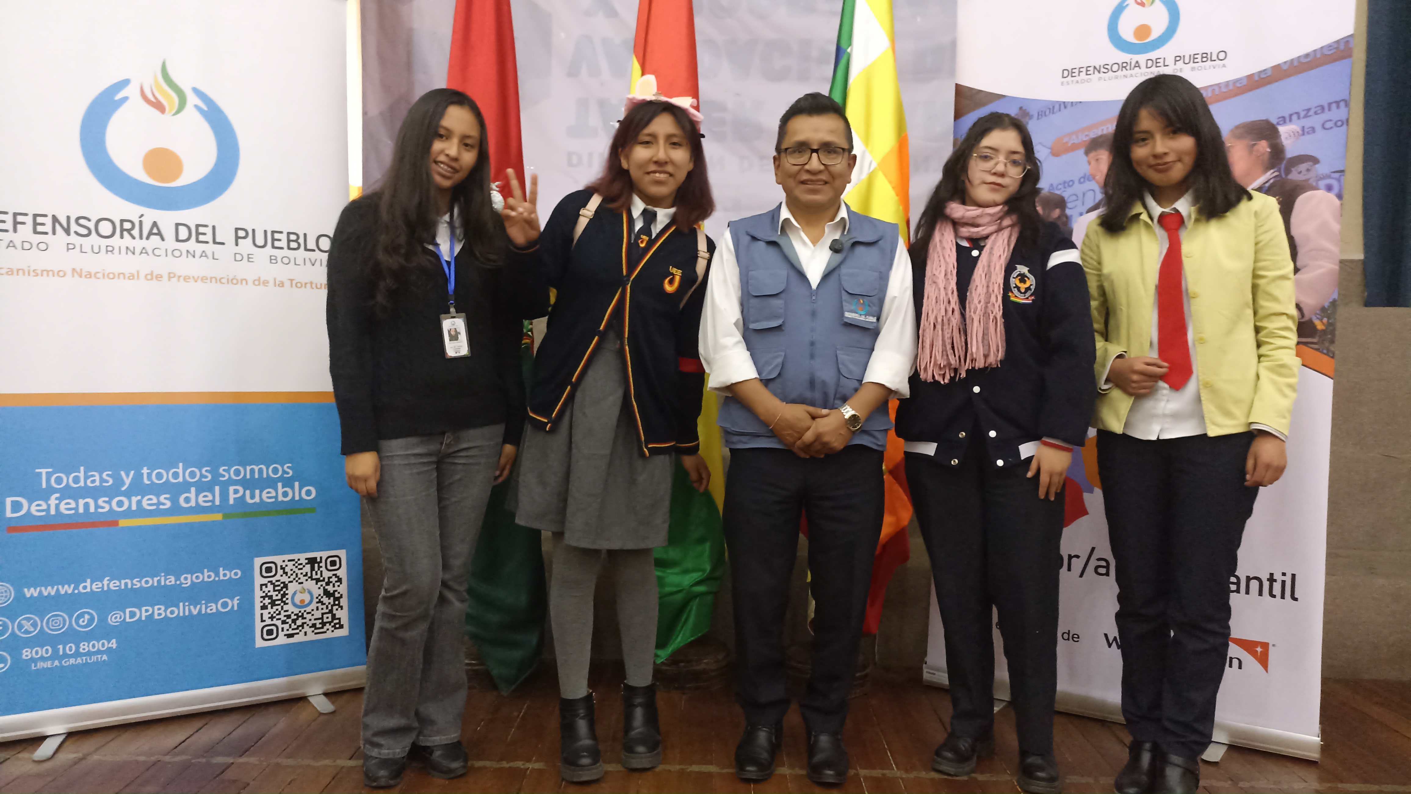 “Ustedes son la extensión de la Defensoría del Pueblo en sus unidades educativas, es una labor muy comprometida y ética, porque son el ejemplo de sus compañeras y compañeros. Ante la existencia de alguna conflictividad interna ustedes son quienes canalizan esa aparente o real vulneración de derechos, ante las instancias correspondientes; ustedes son desde ahora los constructores de una convivencia pacífica y armónica en la unidad educativa y hacia afuera en la sociedad boliviana”, enfatizó el Defensor del Pueblo, Pedro Callisaya.