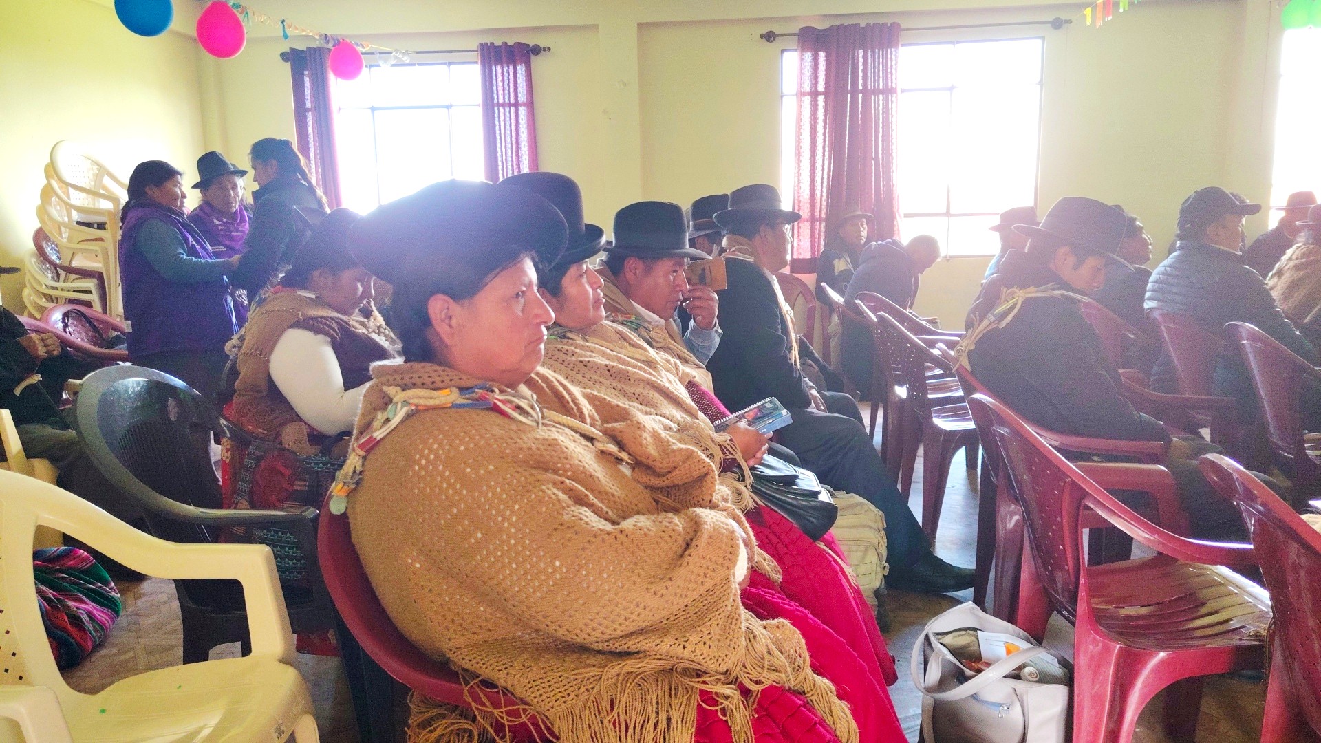 La capacitación se realizó en coordinación con el Servicio Legal Integral Municipal (SLIM) de Huarina y contó con la participación de aproximadamente 70 personas, a quienes se brindó información sobre los mecanismos de protección establecidos en la Ley N° 348, orientados a prevenir y atender las diferentes formas de violencia contra las mujeres, así como sobre los procedimientos y las responsabilidades institucionales en la atención a víctimas de violencia.