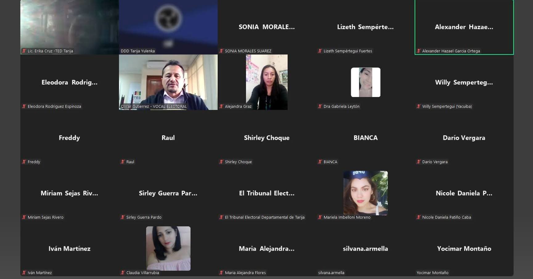 El presidente del TED Tarija, Óscar Lino Gutiérrez, manifestó que "el Tribunal Electoral Departamental tiene como prioridad garantizar la transparencia de todas las acciones durante la jornada electoral, por lo que valoramos la participación de la Defensoría del Pueblo y sus voluntarios", durante la inauguración del espacio virtual de fortalecimiento de capacidades.