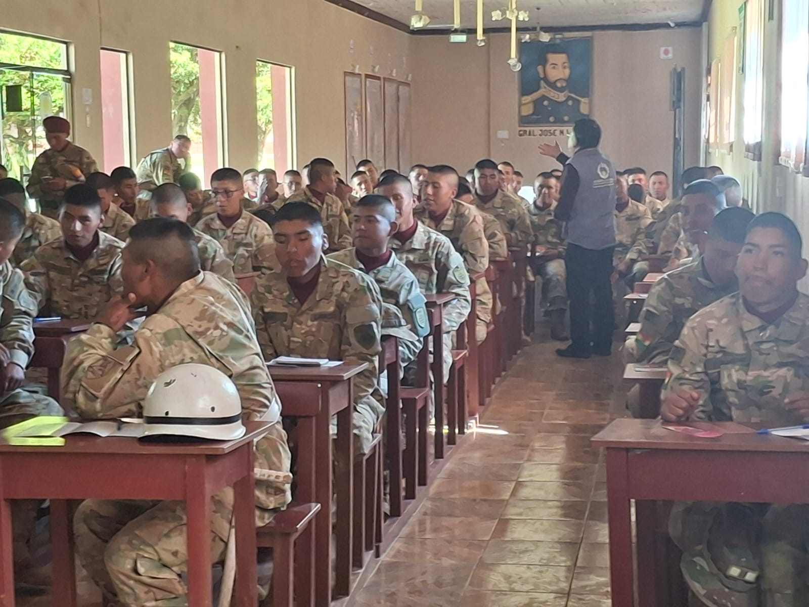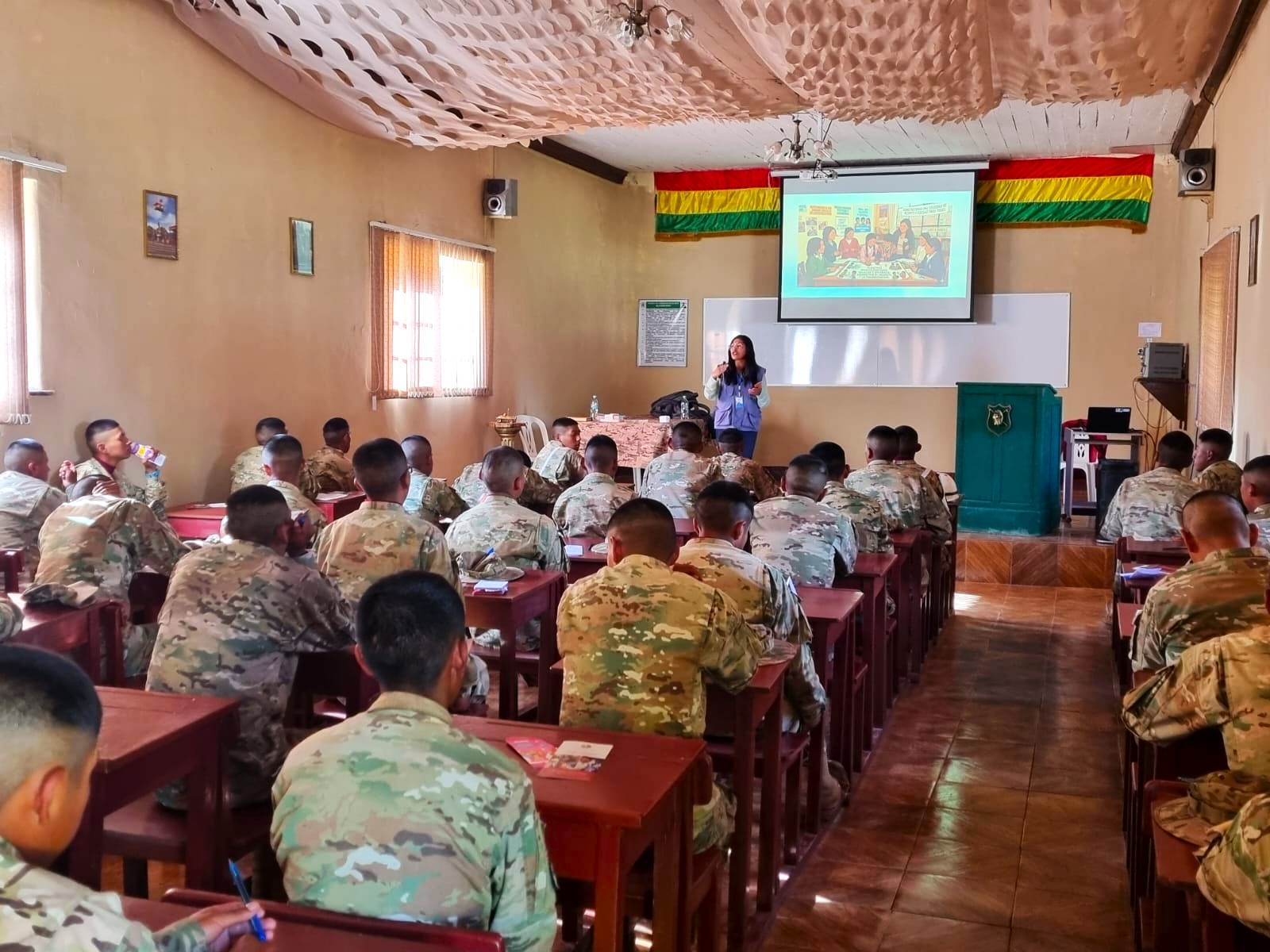 Guaqui, 19 de marzo de 2026 (UCOM7UCREA). – En el marco de su mandato constitucional de promoción y difusión de los derechos humanos, la Defensoría del Pueblo capacitó a 100 jóvenes que prestan el servicio militar en el Regimiento de Caballería Mecanizado N° 5 “Gral. José Manuel Lanza”, en masculinidades plurales y diversas.