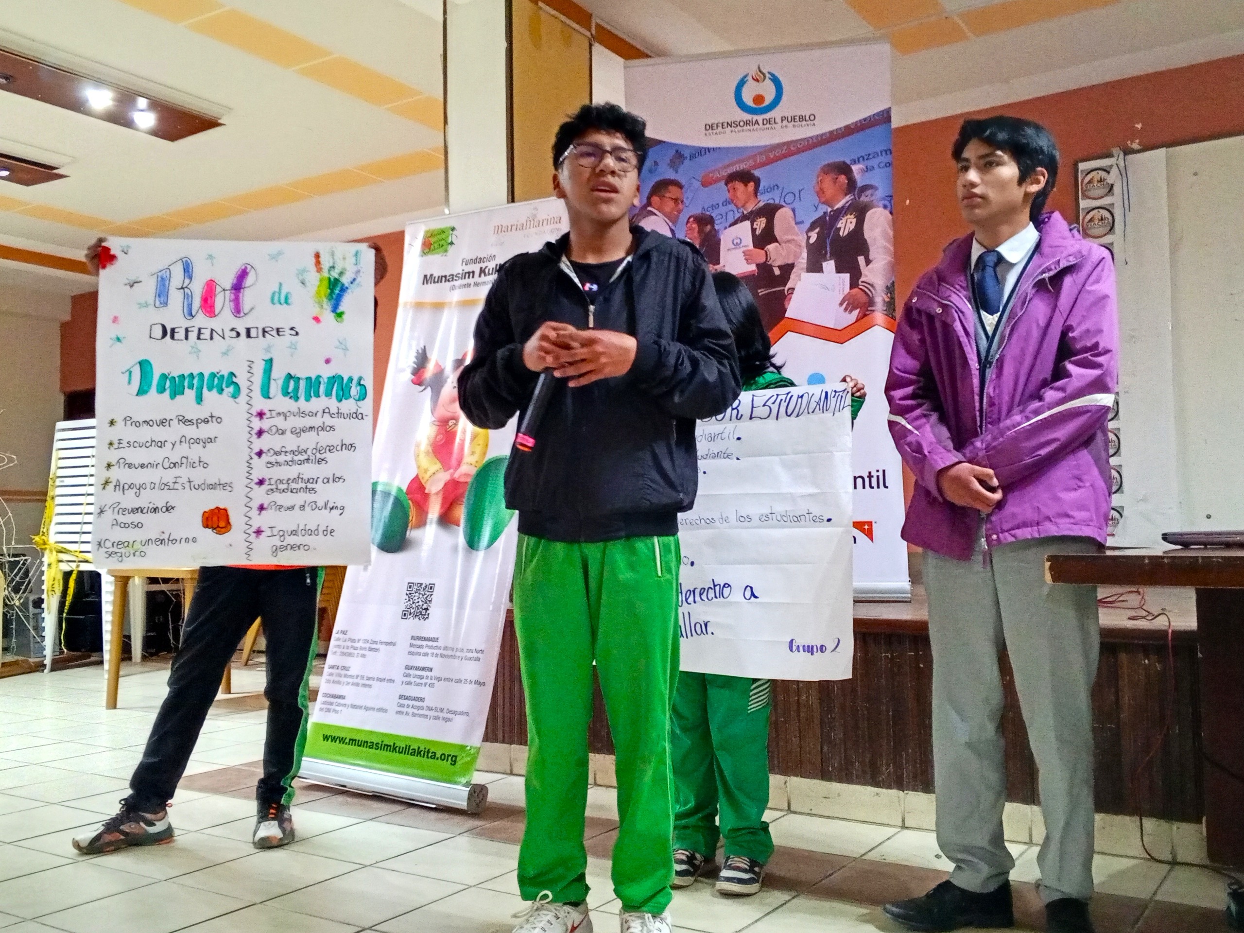 “Por instrucción del Defensor del Pueblo, Pedro Callisaya Aro, llevamos a cabo el encuentro regional de defensoras y defensores estudiantiles, denominado “Voces que Transforman", en este evento, defensores estudiantiles de Viacha se reunieron con sus pares de diferentes unidades educativas de Viacha (…) por aclamación, se eligió a cuatro defensores estudiantiles, dos titulares y dos suplentes para participar del encuentro nacional que organiza la Defensoría del Pueblo”, informó el responsable de la Unidad de Coordinación Regional de El Alto de la Defensoría del Pueblo, Fernando Claros.