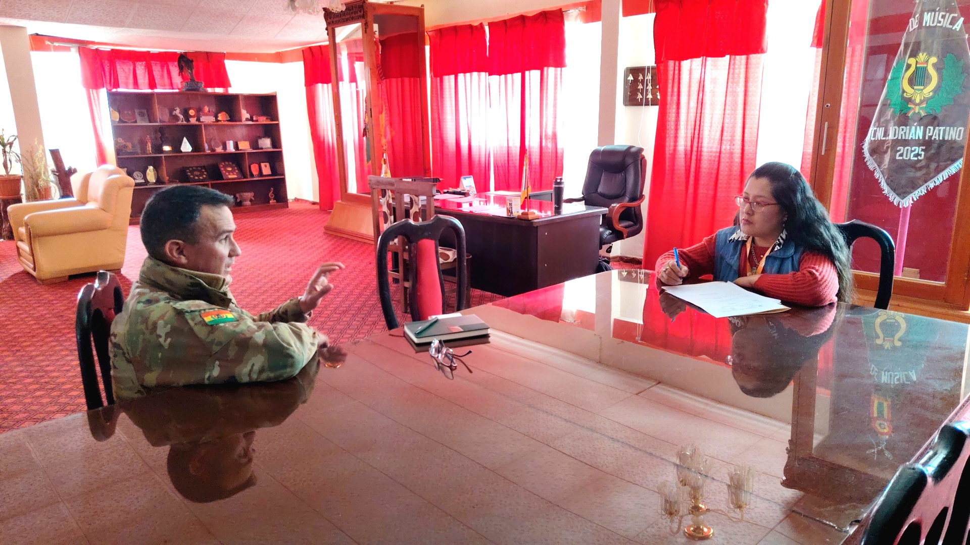 Viacha, 25 de febrero de 2026 (UCOM/UCREA). – La Defensoría del Pueblo, realizó un verificativo en la Escuela Militar de Música del Ejército (EMME), "Tcnl. Adrián Patiño Carpio", ubicado en el municipio de Viacha, La Paz, tras recibir una denuncia por una presunta agresión contra un joven que presta el servicio militar obligatorio, quien habría sido víctima de maltrato por parte de un par antiguo, de su regimiento.